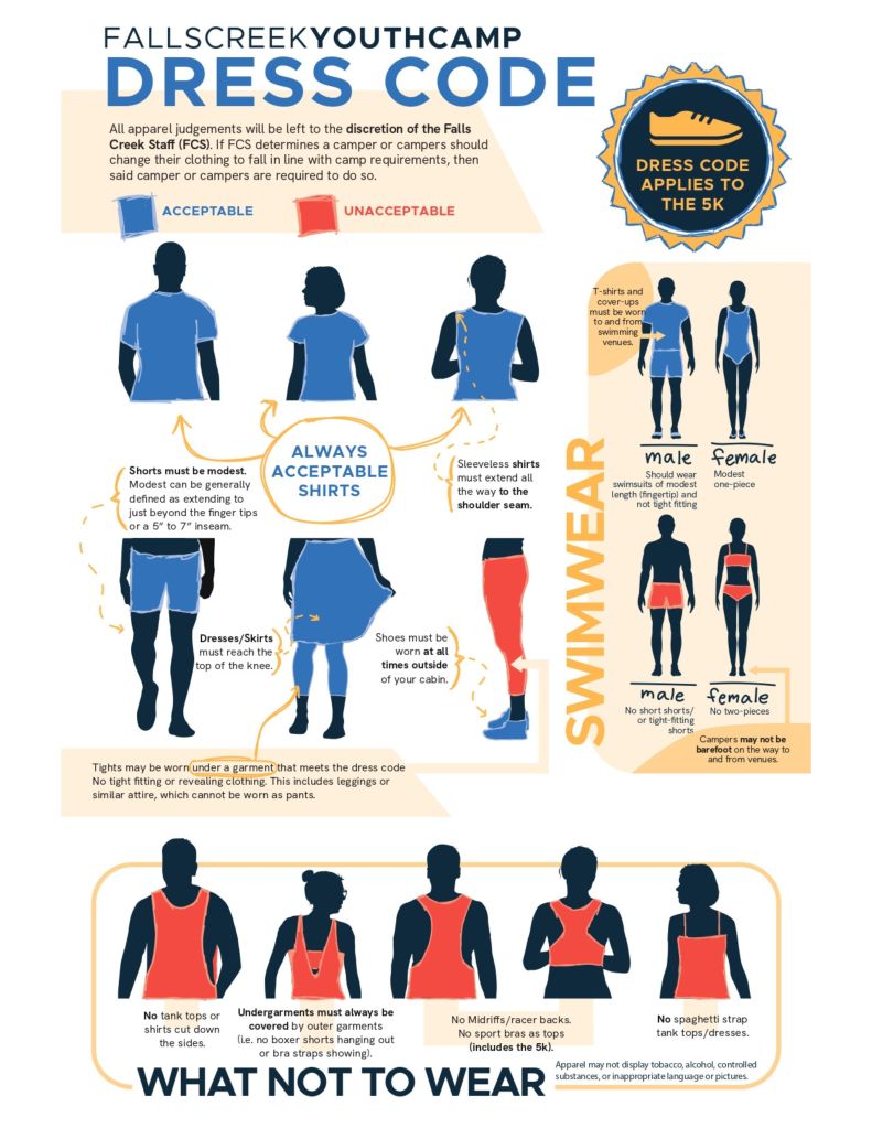 I am excited for another summer and another chance to take students to Youth Camp! This year we will be going to Falls Creek in Davis, OK. Below you will find the packing list, dress code, theme day suggested attire, camp rules, and link for online form! Please look over this with your student.
